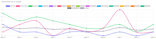 In this table, we benchmark how many emails brands have send and their average email scores, which we calculate using over 50 datapoints that measure how much best practices are ensured (spam score, email authenticiation & certificates, email size, subject line lenght, word & links count etc.)