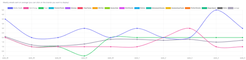In this table, we benchmark how many emails brands have send and their average email scores, which we calculate using over 50 datapoints that measure how much best practices are ensured (spam score, email authenticiation & certificates, email size, subject line lenght, word & links count etc.)