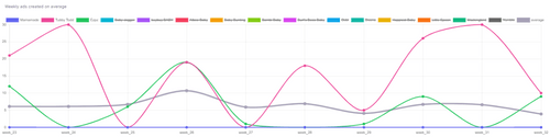 In this table, we benchmark the brands velocity and performances - how much ads they've been publishing, and how many different copy has been used.