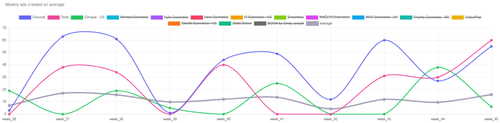 In this table, we benchmark the brands velocity and performances - how much ads they've been publishing, and how many different copy has been used.
