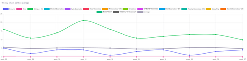 In this table, we benchmark how many emails brands have send and their average email scores, which we calculate using over 50 datapoints that measure how much best practices are ensured (spam score, email authenticiation & certificates, email size, subject line lenght, word & links count etc.)