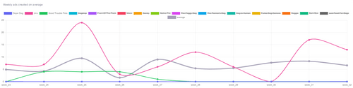 In this table, we benchmark the brands velocity and performances - how much ads they've been publishing, and how many different copy has been used.