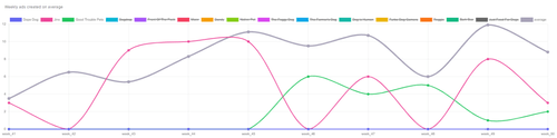 In this table, we benchmark the brands velocity and performances - how much ads they've been publishing, and how many different copy has been used.