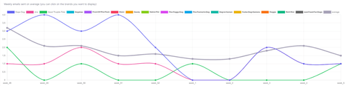 In this table, we benchmark how many emails brands have send and their average email scores, which we calculate using over 50 datapoints that measure how much best practices are ensured (spam score, email authenticiation & certificates, email size, subject line lenght, word & links count etc.)