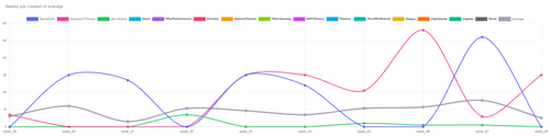 In this table, we benchmark the brands velocity and performances - how much ads they've been publishing, and how many different copy has been used.
