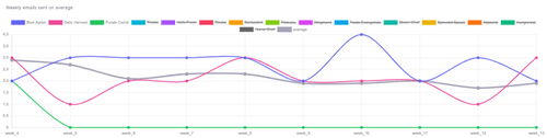 In this table, we benchmark how many emails brands have send and their average email scores, which we calculate using over 50 datapoints that measure how much best practices are ensured (spam score, email authenticiation & certificates, email size, subject line lenght, word & links count etc.)