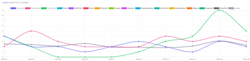 In this table, we benchmark how many emails brands have send and their average email scores, which we calculate using over 50 datapoints that measure how much best practices are ensured (spam score, email authenticiation & certificates, email size, subject line lenght, word & links count etc.)