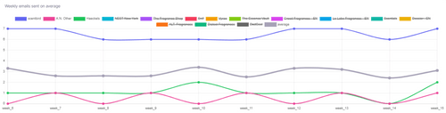 In this table, we benchmark how many emails brands have send and their average email scores, which we calculate using over 50 datapoints that measure how much best practices are ensured (spam score, email authenticiation & certificates, email size, subject line lenght, word & links count etc.)