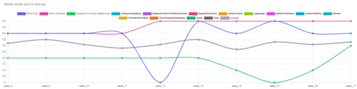In this table, we benchmark how many emails brands have send and their average email scores, which we calculate using over 50 datapoints that measure how much best practices are ensured (spam score, email authenticiation & certificates, email size, subject line lenght, word & links count etc.)