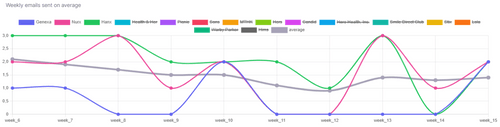 In this table, we benchmark how many emails brands have send and their average email scores, which we calculate using over 50 datapoints that measure how much best practices are ensured (spam score, email authenticiation & certificates, email size, subject line lenght, word & links count etc.)