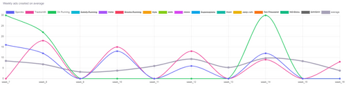 In this table, we benchmark the brands velocity and performances - how much ads they've been publishing, and how many different copy has been used.