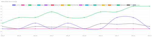 In this table, we benchmark how many emails brands have send and their average email scores, which we calculate using over 50 datapoints that measure how much best practices are ensured (spam score, email authenticiation & certificates, email size, subject line lenght, word & links count etc.)