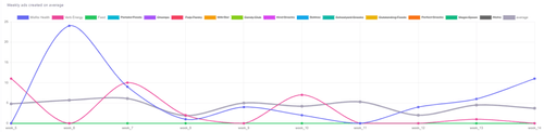 In this table, we benchmark the brands velocity and performances - how much ads they've been publishing, and how many different copy has been used.