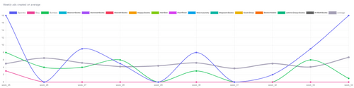 In this table, we benchmark the brands velocity and performances - how much ads they've been publishing, and how many different copy has been used.