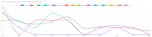 In this table, we benchmark how many emails brands have send and their average email scores, which we calculate using over 50 datapoints that measure how much best practices are ensured (spam score, email authenticiation & certificates, email size, subject line lenght, word & links count etc.)