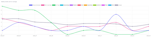 In this table, we benchmark how many emails brands have send and their average email scores, which we calculate using over 50 datapoints that measure how much best practices are ensured (spam score, email authenticiation & certificates, email size, subject line lenght, word & links count etc.)